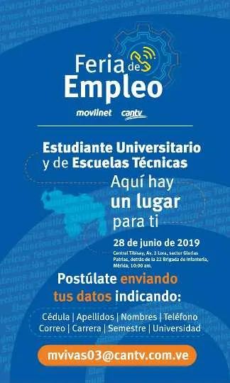 Leer másImpulsando el trabajo productivo Prensa Cantv La Empresa oferta oportunidades formativas y laborales a estudiantes en áreas técnicas y administrativas,