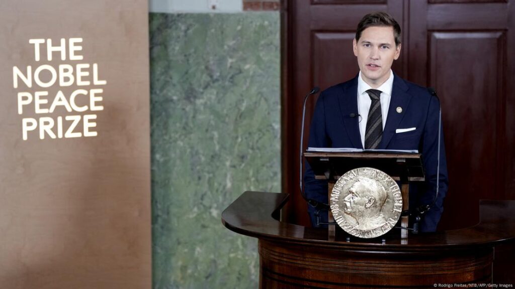 El Premio Nobel de la Paz 2025 se otorga a «una valiente y comprometida defensora de la paz, a una mujer que mantiene viva la llama de la democracia en medio de una creciente oscuridad», anunció en la lectura del fallo Jørgen Watne Frydnes, presidente del Comité Noruego del Nobel.