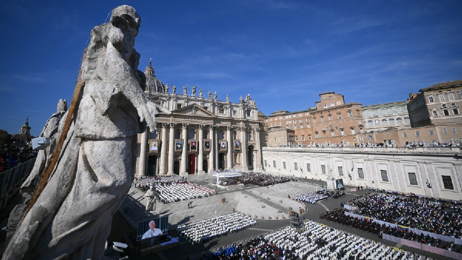 Cerca de 55.000 personas se congregaron en la plaza para la misa de canonización, según informaron las autoridades locales.