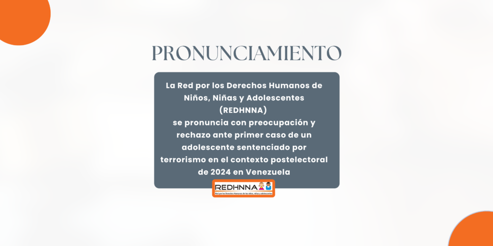 La Red por los Derechos Humanos de Niños, Niñas y Adolescentes (REDHNNA) se pronuncia con preocupación y rechazo ante primer caso de un adolescente sentenciado por terrorismo en el contexto postelectoral de 2024 en Venezuela
